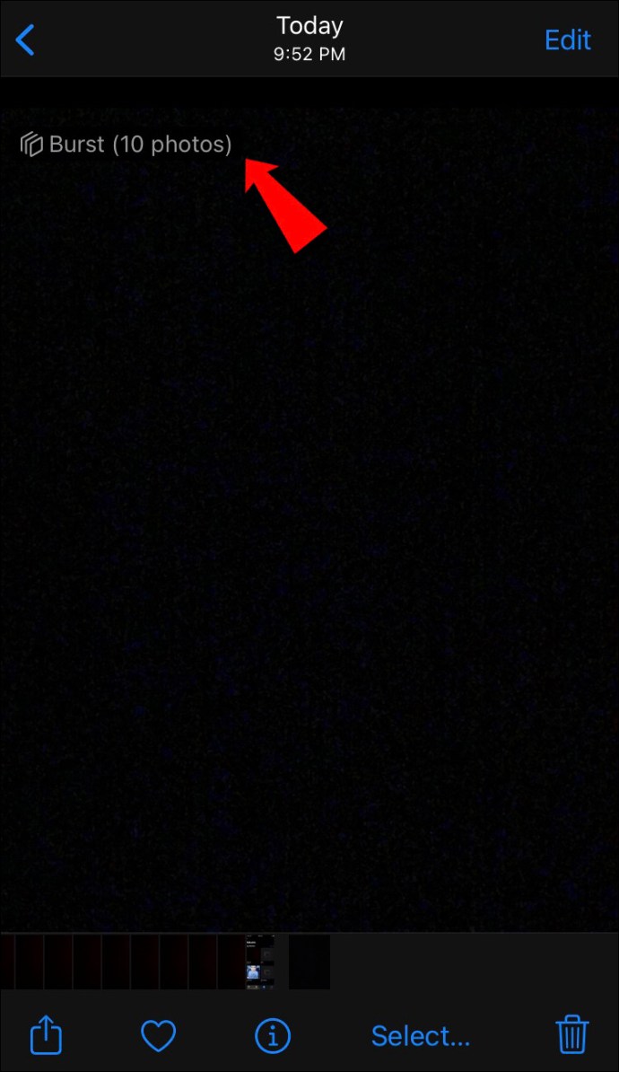 - Open the burst image. You'll see the "Burst (10 photos)" message in the upper-left corner of the photograph.